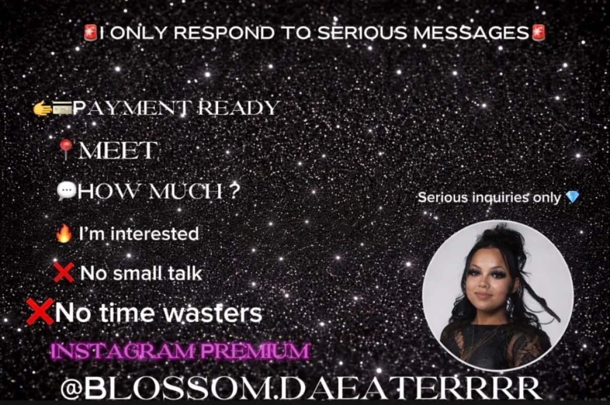 For varification follow Instagram @ "Blossom.daeaterrrr" Outcalls REQUIRE a deposit (This lets me know you're serious and not wasting my time) No AA NO BARE (dont ask) No time wasters No lowballers (if you try negotiating prices you'll be denied from booking) No police No pimps